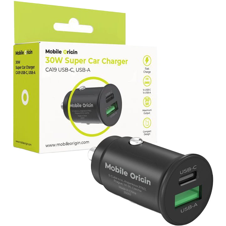 Ładowarka samochodowa Mobile Origin CA19 30W, USB-C PD, USB-A QC 3.0, PPS, czarna