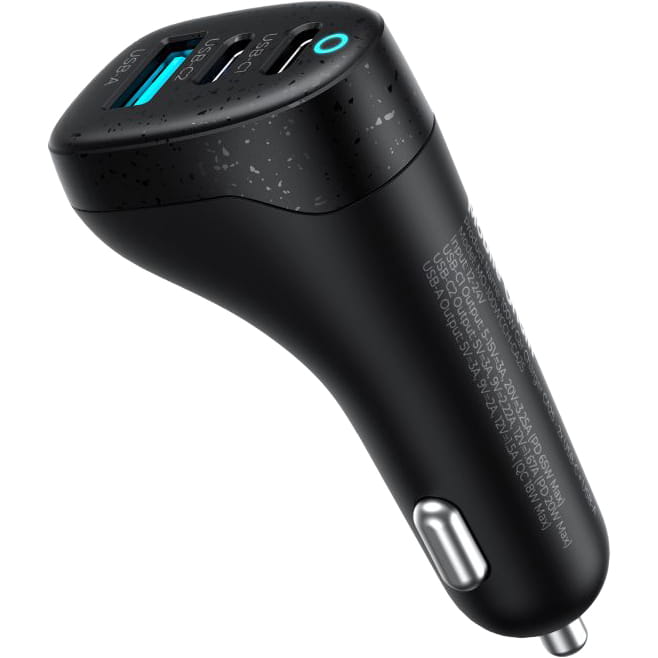 Trzy funkcjonalne porty pozwalają jednocześnie ładować kilka urządzeń w samochodzie, co znacząco zwiększa komfort podróży kierowcy i pasażerów. Inteligentny podział mocy dynamicznie dostosowuje parametry pracy do obciążenia, aby utrzymać stabilne i bezpieczne zasilanie każdego podłączonego sprzętu.