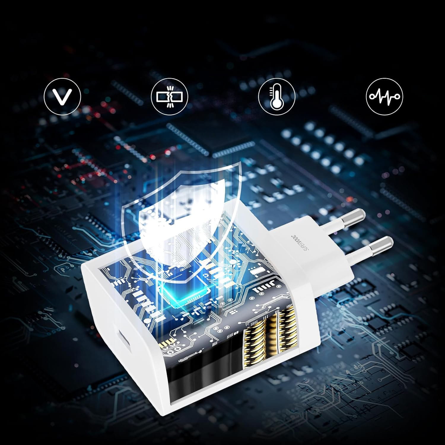 Ładowarka została wyposażona w 1 port USB-A, co zapewnia wysoką kompatybilność z kablami i urządzeniami. Obsługuje smartfony z technologią SuperVOOC 80W, 67W, 45W oraz 33W, dzięki czemu automatycznie dopasowuje moc do podłączonego sprzętu. Dzięki temu każde podłączone urządzenie otrzymuje dokładnie tyle mocy, ile potrzebuje - bez przeciążenia i bez strat energii.