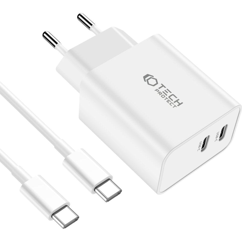 OUTLET: Ładowarka sieciowa Tech-Protect C35W 2-PORT Network PD 35W USB-C + kabel USB-C, biała