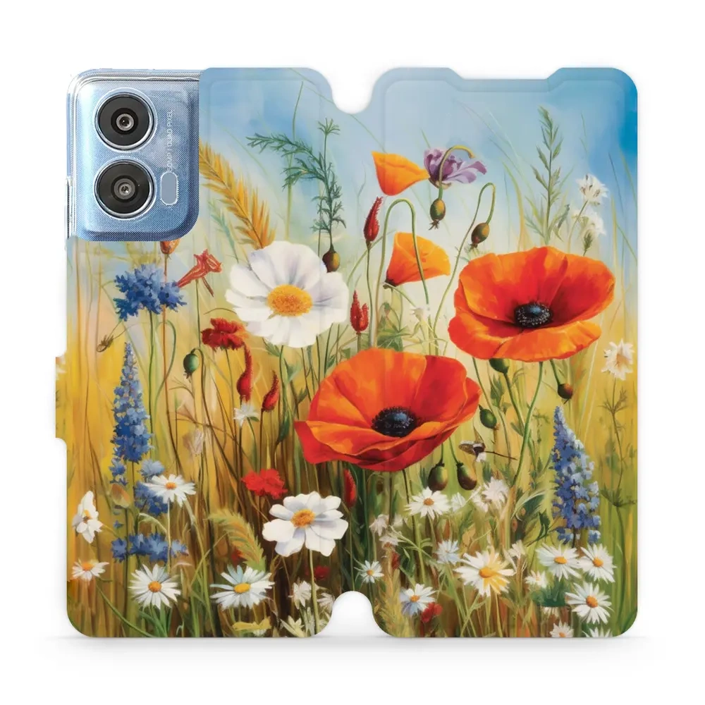 Etui z klapką do Motorola Moto G04, Mobiwear Book, łąkowe kwiaty
