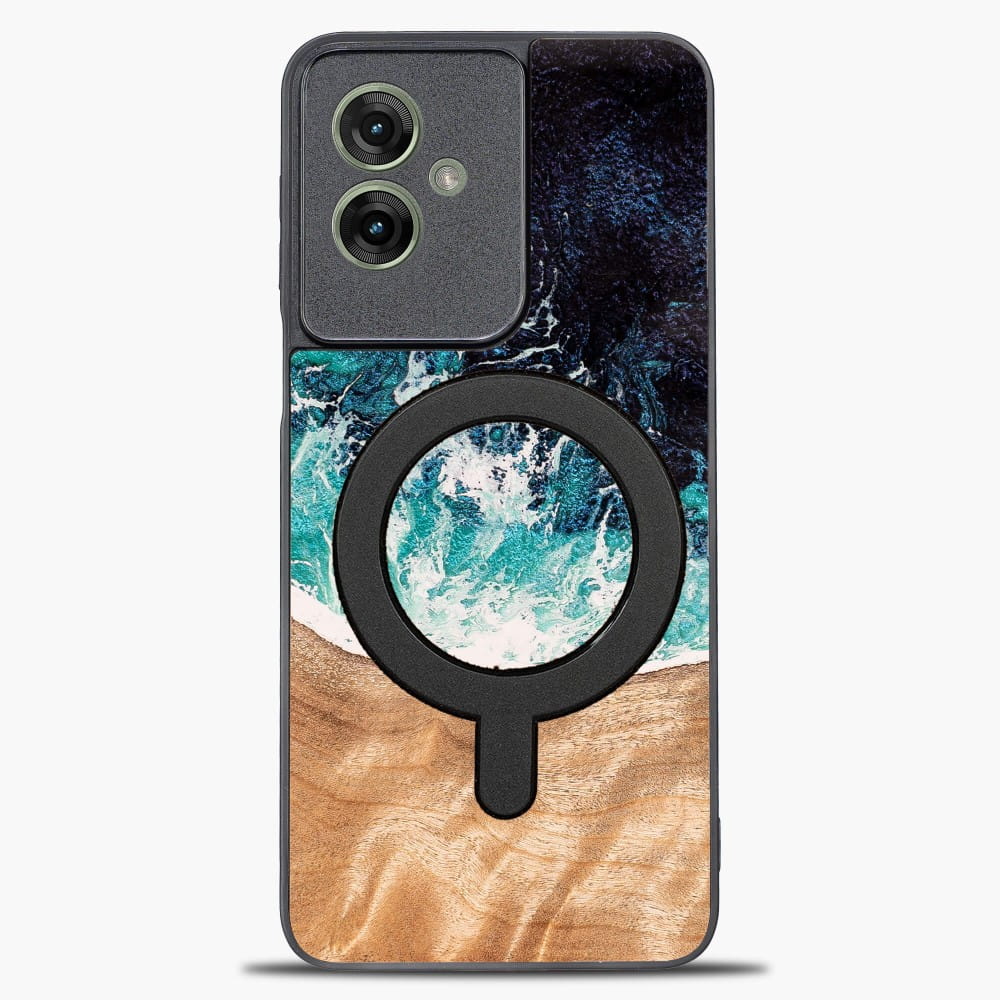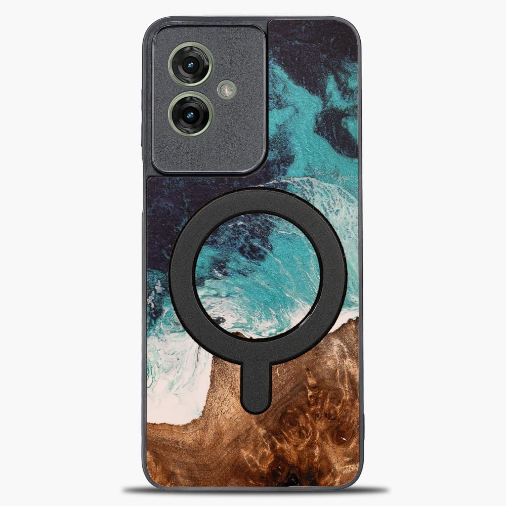Drewniane etui do Motorola Moto G55 5G, Bewood Unique Dream Island do MagSafe, niebiesko-brązowe
