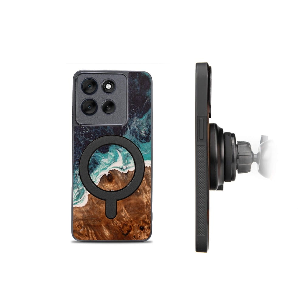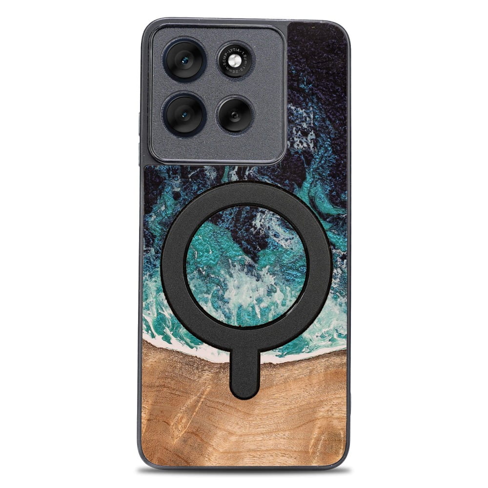 Drewniane etui do Motorola Moto G56 5G, Bewood Unique Dream Island do MagSafe, niebiesko-brązowe