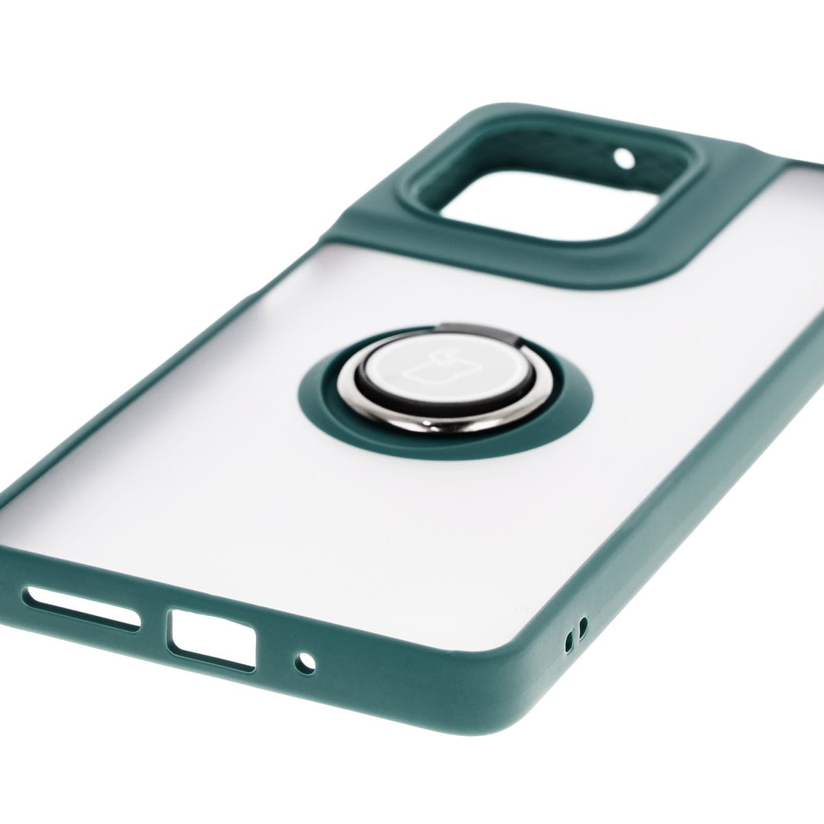 Etui z uchwytem na palec Bizon Case Hybrid Ring do Motorola Moto G75 5G, przydymione z ciemnozieloną ramką