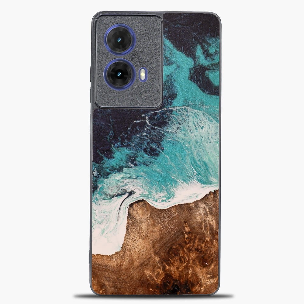 Drewniane etui do Motorola Moto G85 5G, Bewood Unique Dream Island, niebiesko-brązowe