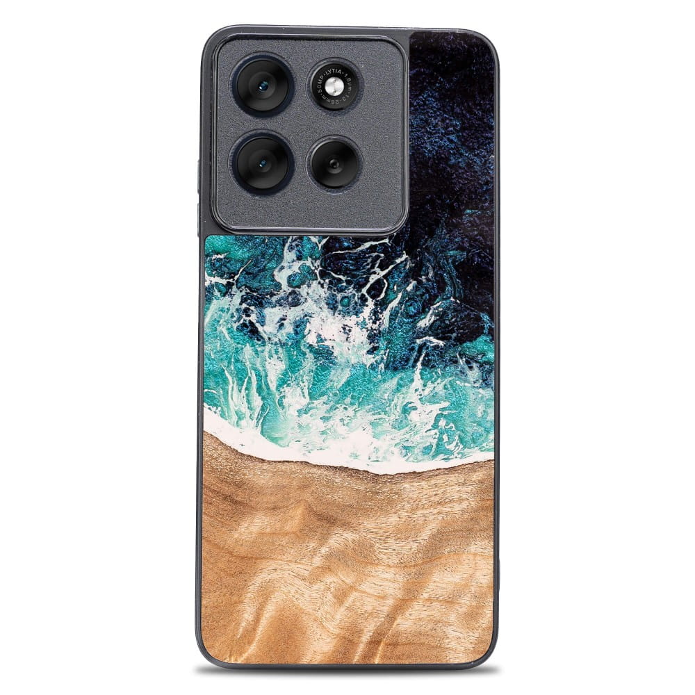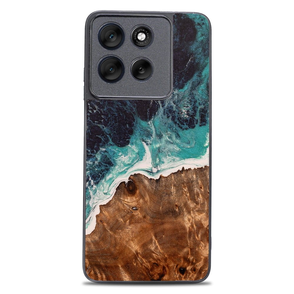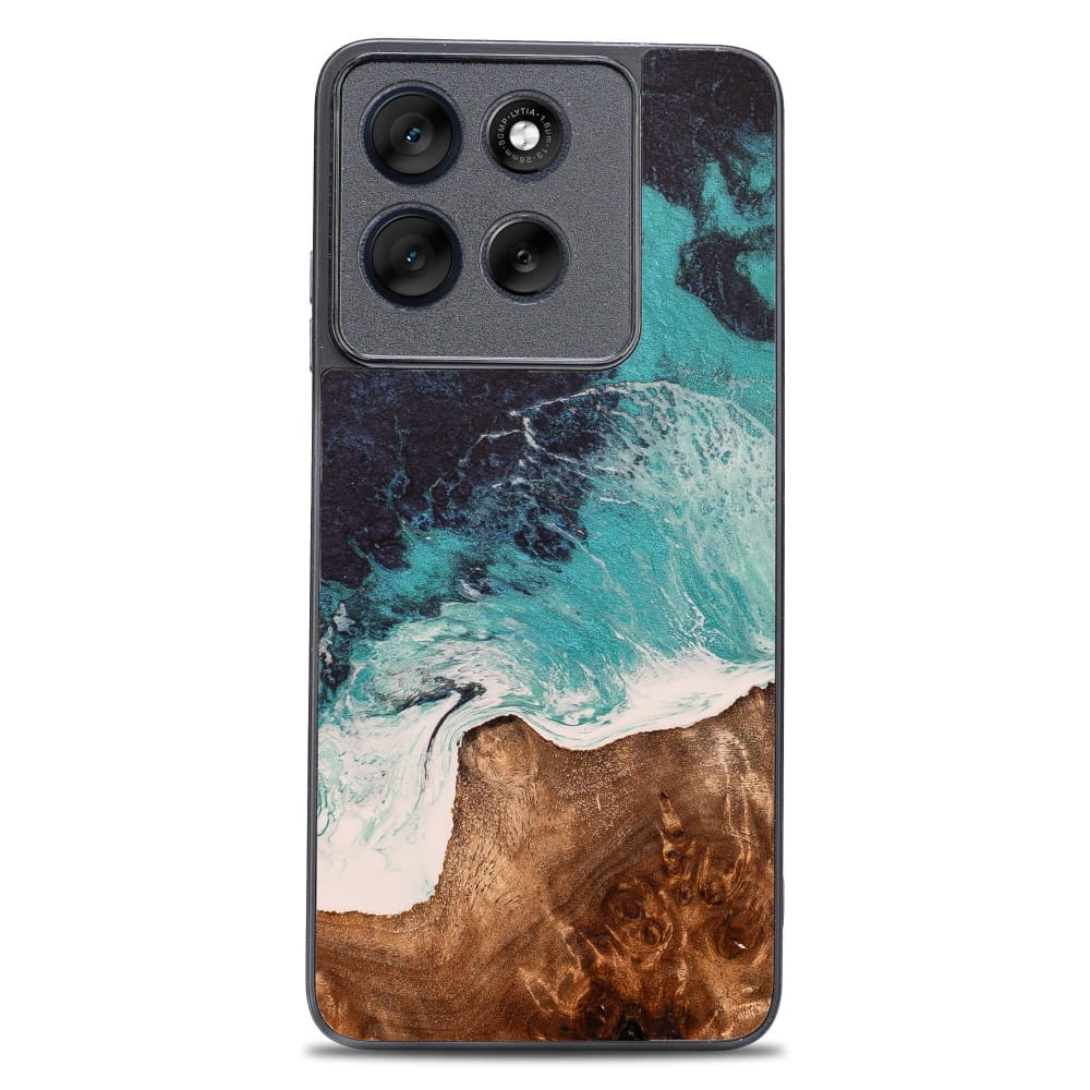 Drewniane etui do Motorola Moto G86 5G, Bewood Unique Dream Island, niebiesko-brązowe