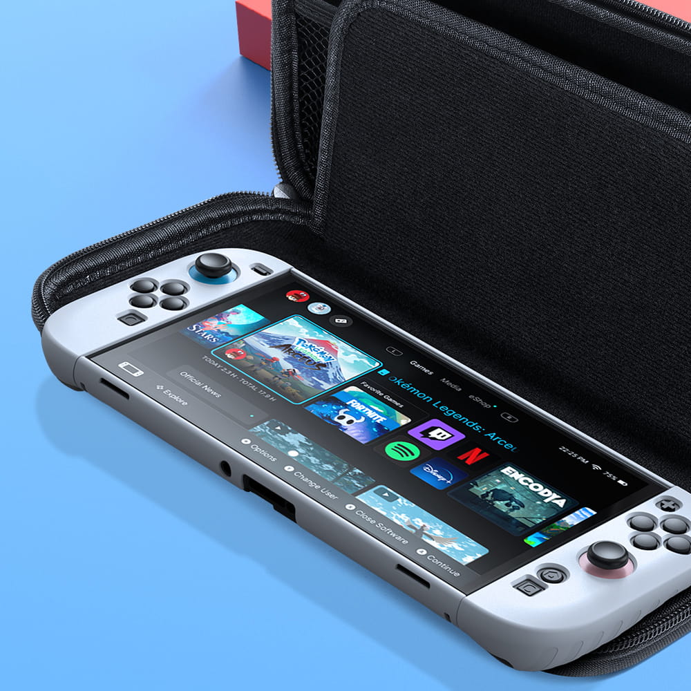 Profesjonalna struktura z odpornego materiału EVA skutecznie eliminuje zagrożenie wynikające z upadków, chroniąc konsolę przed niespodziewanymi obrażeniami i stratą wyników walki. Z takim wsparciem możesz śmiało wyruszyć na turniej lub w podróż i skoncentrować się wyłącznie na osiągnięciu kolejnego levelu adrenaliny.