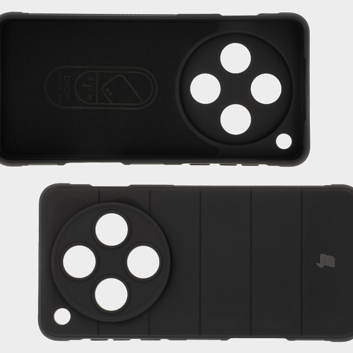 Przywodzące na myśl opony samochodowe, teksturowane boki, zapewniają lepszy chwyt, a gdyby urządzenie i tak upadło — tak jak kanapka, masłem w dół — to nie zderzy się bezpośrednio z podłogą, bo obudowa wystaje ponad krańce telefonu! Podwyższone krawędzie otaczają również wyspę aparatu, co w połączeniu z dedykowanymi wycięciami na soczewki stanowi solidną ochronę obiektywów.