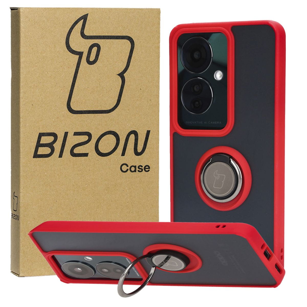 Etui z uchwytem na palec Bizon Case Hybrid Ring do Oppo Reno11 F 5G, przydymione z czerwoną ramką