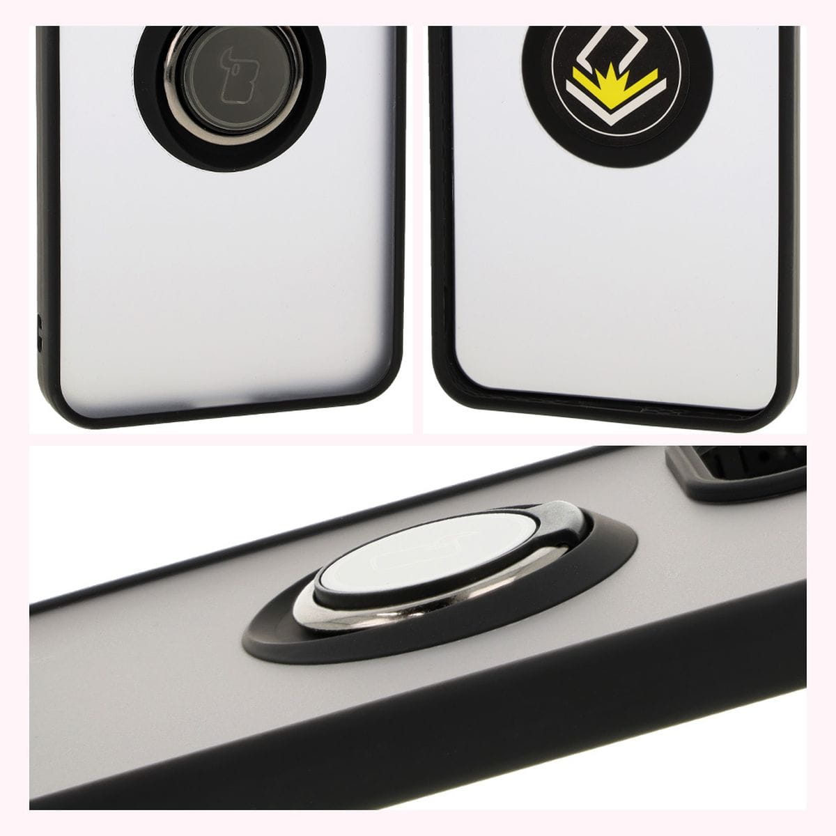 Etui z uchwytem na palec Bizon Case Hybrid Ring do Oppo Reno 12, przydymione z czarną ramką