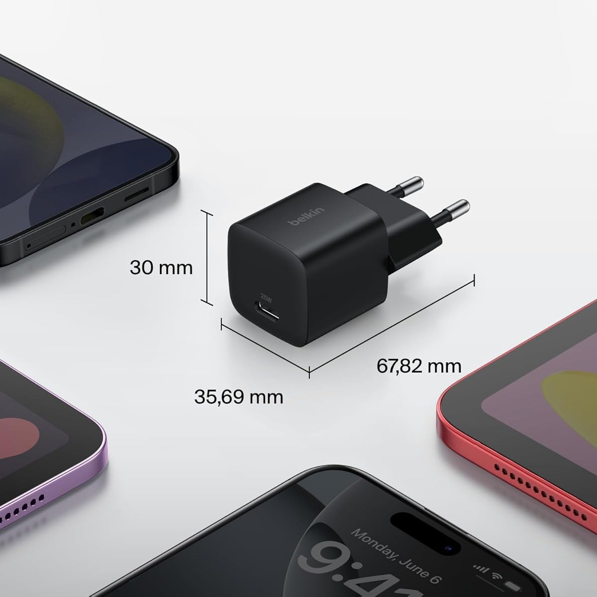 Nowoczesny design ładowarki prezentuje się smukło i stylowo, a dzięki kompaktowej budowie doskonale sprawdzi się w gniazdkach z małą ilością przestrzeni. To elegancka i mała kostka, która będzie świetną ładowarką podróżną.