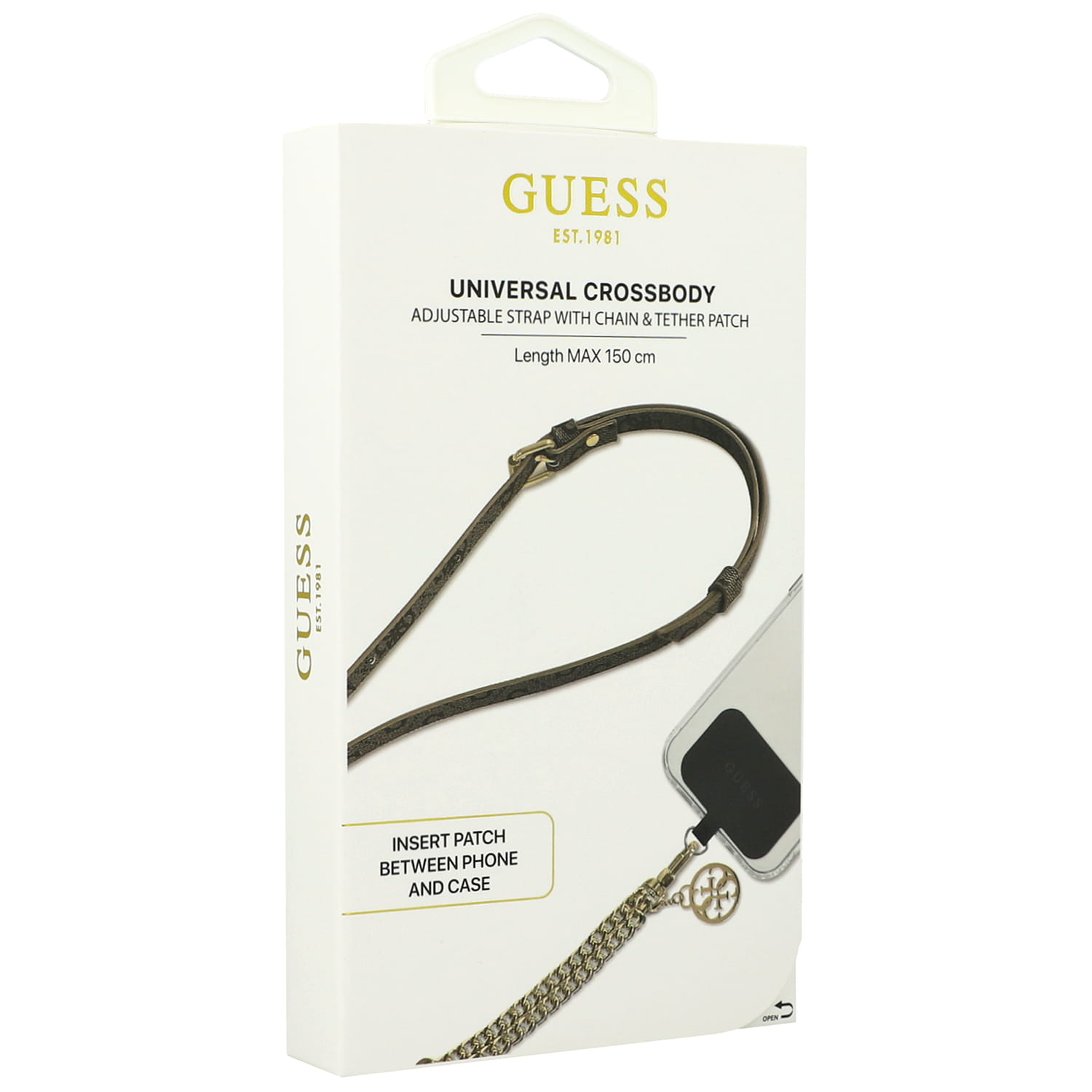 Smycz do telefonu Guess Universal Crossbody Strap / pasek, brązowy ze złotym łańcuszkiem