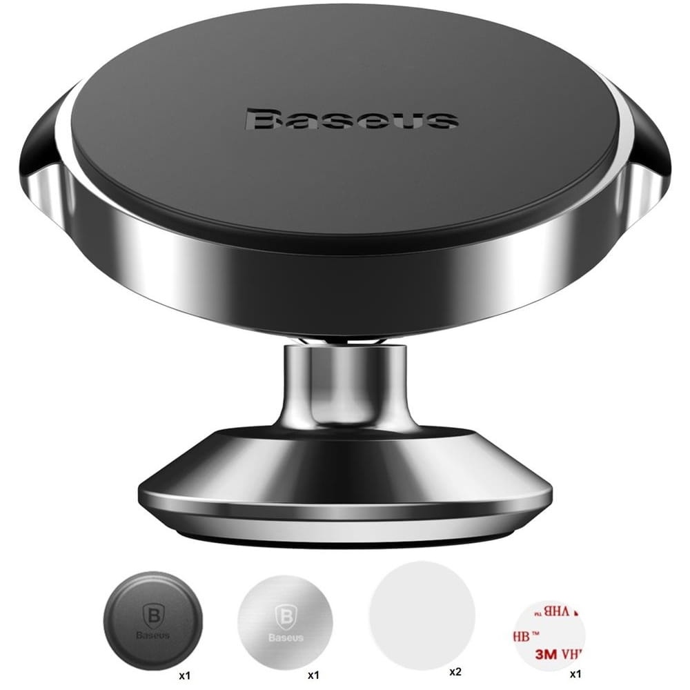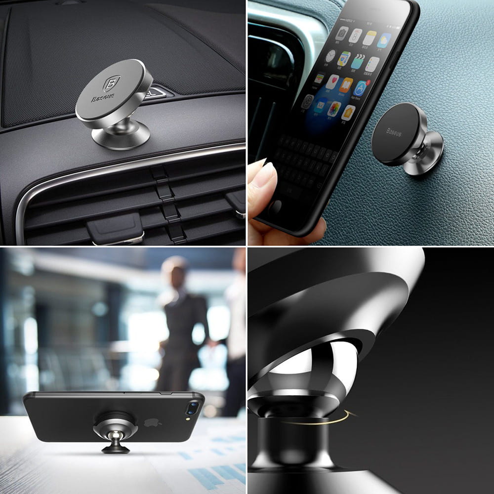 Uchwyt magnetyczny do telefonu marki Baseus montowany na desce rozdzielczej. Wykonany z wysokiej jakości aluminium i TPE. Dzięki czterem mocnym magnesom urządzenie jest stabilnie przymocowane i nie wypadnie z uchwytu. Niewielkie rozmiary, 360-stopniowa regulacja oraz prosty montaż zapewniają łatwe i bezproblemowe korzystanie z akcesorium.