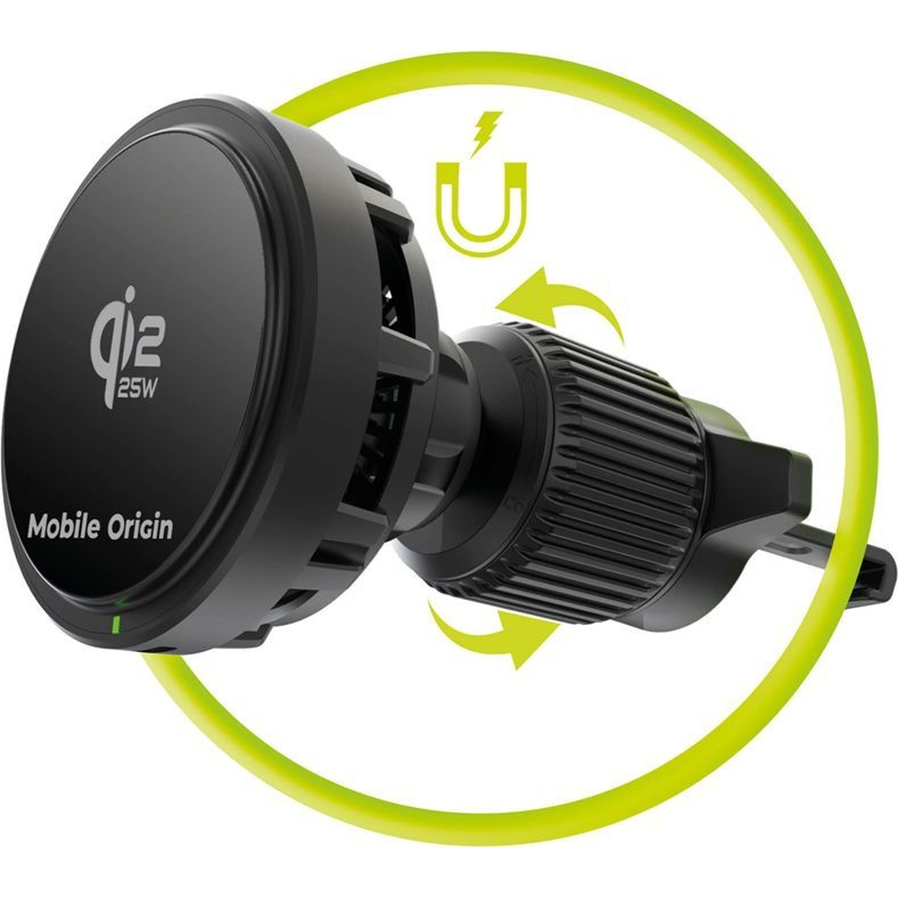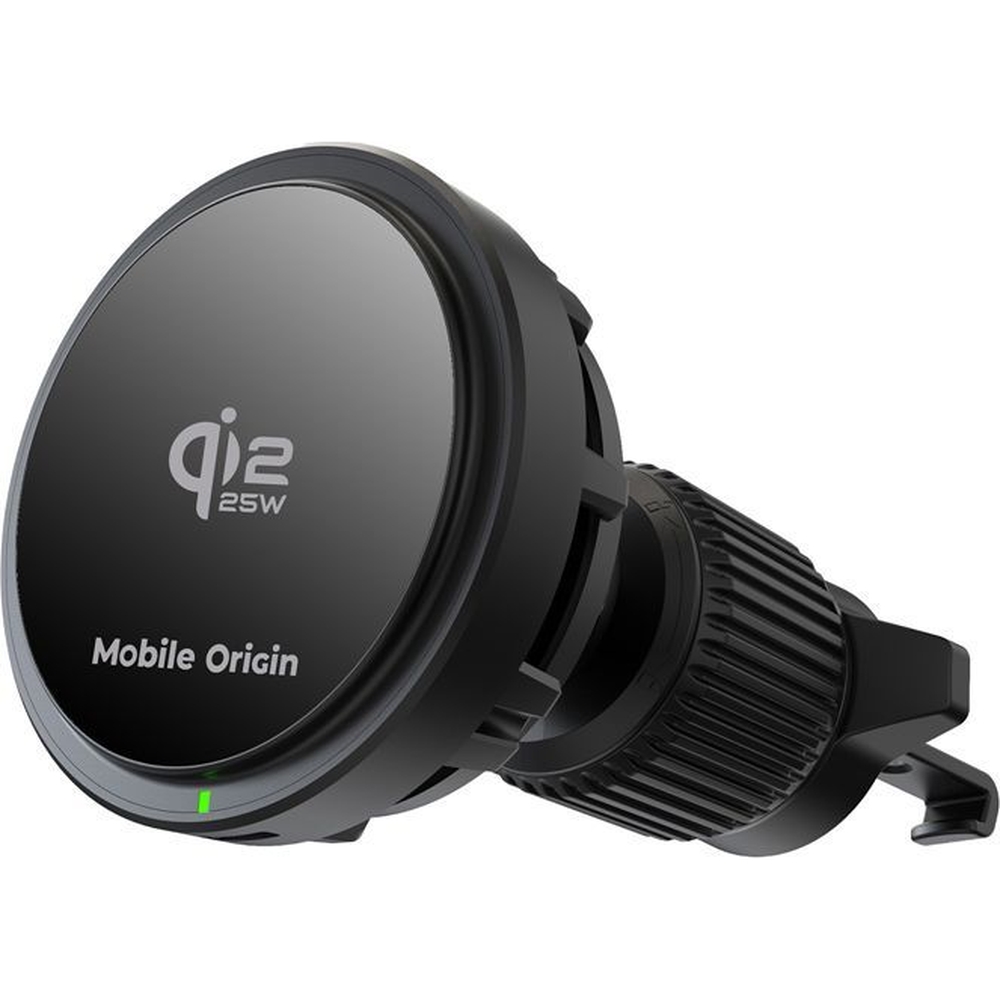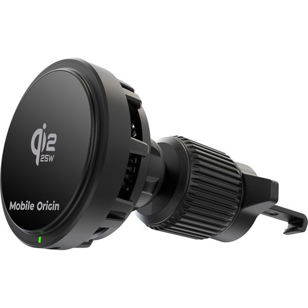 Magnetyczny uchwyt samochodowy z ładowaniem indukcyjnym Qi2 25W Mobile Origin CA24 do kratki nawiewu, czarny