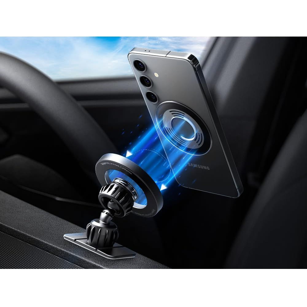 Spigen MFT13 Magnetic Car Mount to magnetyczny uchwyt do samochodu stworzony po to, aby telefon zawsze był w zasięgu wzroku i rąk kierowcy. Dzięki technologii MagSafe, oraz załączonej w opakowaniu blaszce do przyczepienia na telefon, bądź obudowę lokalizowanie urządzenia podczas jazdy staje się dziecinnie proste, co minimalizuje niebezpieczeństwo rozproszenia uwagi.