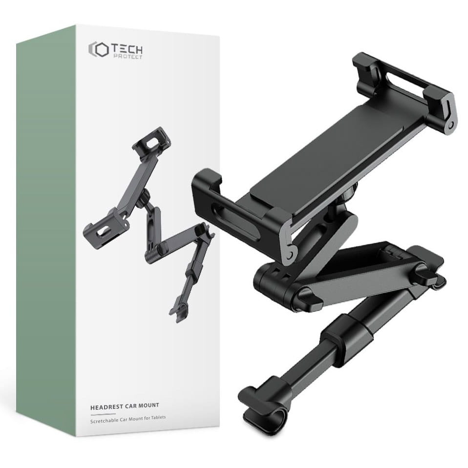 Uchwyt zagłówkowy na tablet / telefon od firmy Tech Protect. Z pewnością umili każdą podróż pasażerom siedzącym z tyłu, dzieci będą zachwycone. Dzięki dwóm regulowanym częściom ramienia oraz przegubowi obrotowemu 360° można łatwo dostosować ustawienie wedle potrzeby.