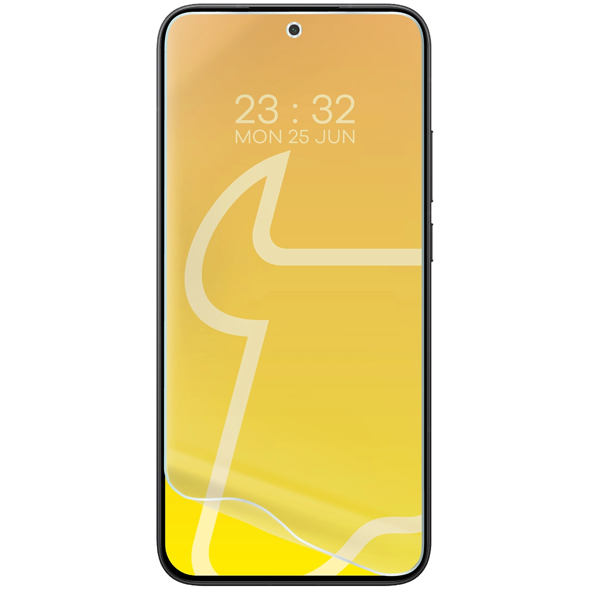 - Przyłóż folię do ekranu, starając się precyzyjnie dopasować jej krawędzie. Następnie delikatnie dociśnij jej środek, aby rozpocząć proces rozprowadzania kleju na całej powierzchni.